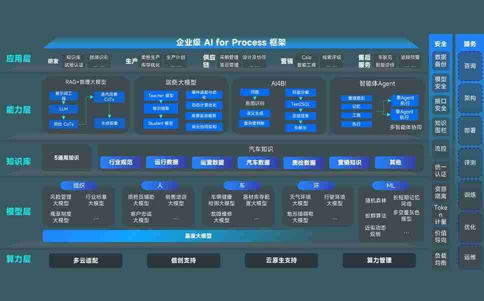 端到端的一站式AI工作空间深度融合了从企业战略规划到日常经营的全流程业务板块,,,,定向解决车企内部领域多、、、、部门多、、、链条长、、、场景碎片化等难题,,,支持车企快速构建以AI为核心的生产力写作体系,,,实现任务执行与AI能力的无缝集成与交互